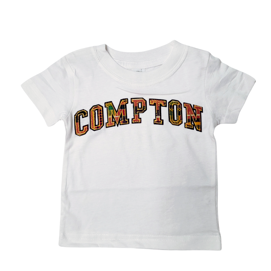 Let your little one rep the city in style with this soft, statement-making infant tee. Made from 100% breathable cotton, it’s designed for comfort and everyday wear. Each shirt features bold, hand-laid lettering made with authentic Kente cloth print, spelling out iconic city names: Compton or Los Angeles.