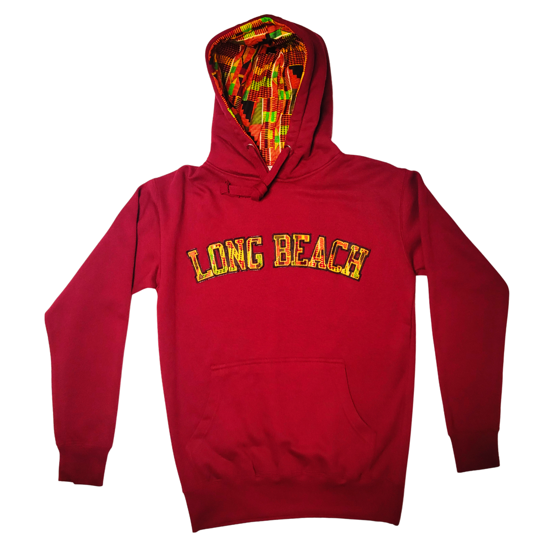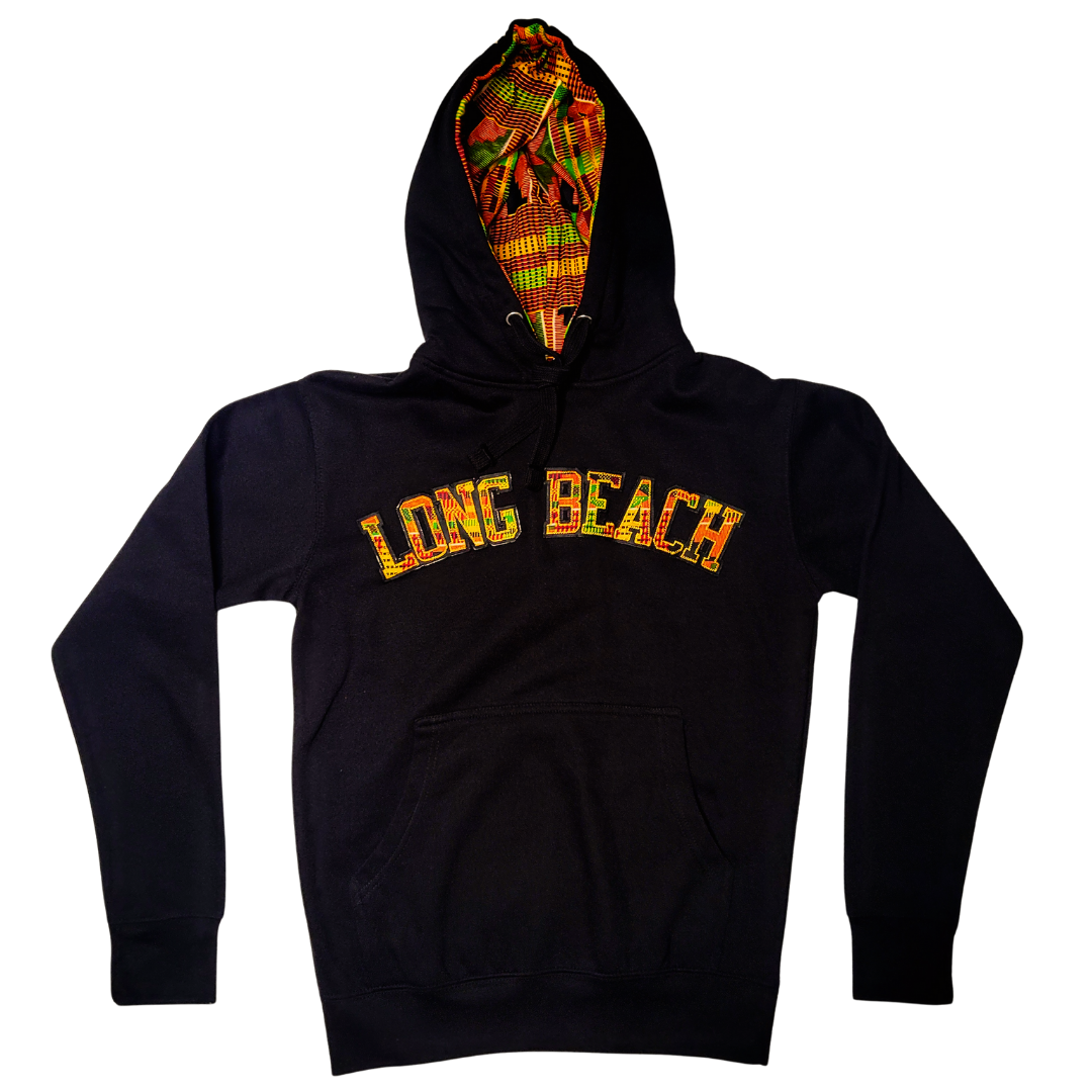 These Adult Hoodies rep Long Beach with bold kente print embroidery across the chest and a kente-lined hood for extra detail. Designed with pride and built for comfort, each hoodie blends cultural style with everyday wear.